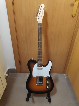 Pack complet de guitarra elèctrica, tot de marques reconegudes (Fender, Squier, Boss). Material cuidat, en molt bon estat i funcionant perfectament. Inclou: – Fender Squier Bullet Telecaster (Brown Sunburst) – Amplificador Fender Frontman 10G (230V, versió europea) – Funda Boss per guitarra elèctrica – Suport de guitarra plegable RockJam – Cable Fender Professional Series Es ven tot junt. No es ven per separat. Entrega en mà preferible. Enviament a consultar.