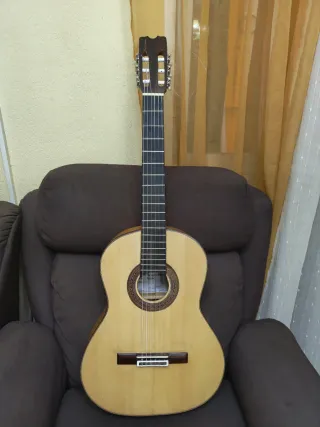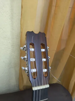 Guitarra de construcción artesanal con trabajo de taracea Hecho por un conocido constructor de granada, los dibujos que se ven son incrustaciones no pintadas. Algunos trabajos de mejora hecho