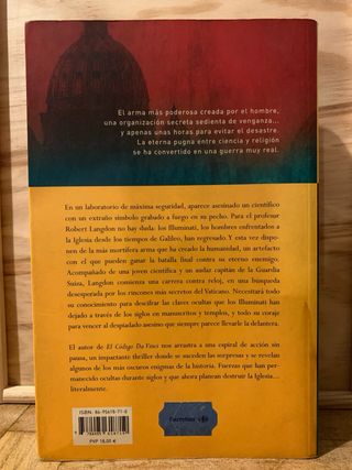Robert Langdon, experto en simbología, es convocado a un centro de investigación suizo para analizar un misterioso signo marcado a fuego en el pecho de un físico asesinado. Allí, Langdon descubre el resurgimiento de una antigua hermandad secreta: los illuminati, que han emergido de las sombras para llevar a cabo la fase final de una legendaria venganza contra su enemigo más odiado: la Iglesia católica. Los peores temores de Langdon se confirman cuando los illuminati anuncian que han escondido una bomba en el corazón de la Ciudad del Vaticano.