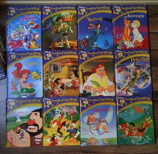 Colección (incompleta) de audio-cuentos Disney. No están todos los libros, ni todos los CD's que corresponden a los libros. Incluye CD's y libros que se muestran en las fotos.