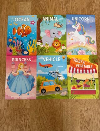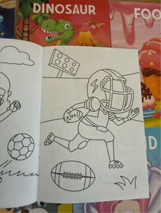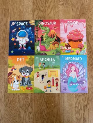 ¡Pack súper divertido de 6 libritos infantiles para colorear! Cada uno con temática diferente y 10 dibujos adorables y sencillos: • SPACE (espacio con astronautas y planetas) • DINOSAUR (dinosaurios en la jungla y volcanes) • FOOD (comida dulce: cupcakes, donuts, helados…) • PET (mascotas: perritos, gatitos, pajaritos…) • SPORTS (deportes: fútbol, baloncesto, bici, etc.) • MERMAID (sirenas con conchas y criaturas marinas) Cada librito mide 20 cm alto x 15 cm ancho (tamaño perfecto para manos pequeñas, viajes o ratitos en casa). Total: 60 dibujos para colorear, con laberintos, objetos y escenas divertidas (ver fotos interiores)