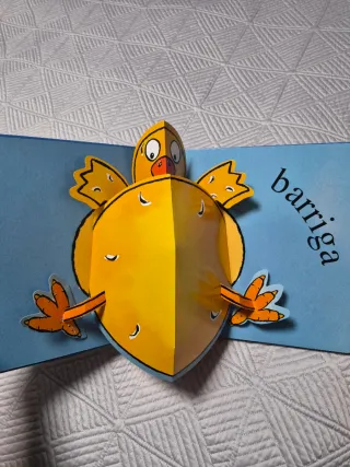 Libro con páginas pop ups, muy gracioso y divertido. Tamaño 26x26, grande, haciendo que sean más divertidas las páginas de pop ups cuando se abren.