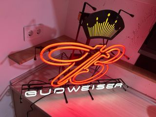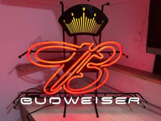 Cartel de neón de Budweiser con el icónico diseño de la corona. Perfecto para bares, garajes o coleccionistas. - Iluminación en neón rojo y blanco. - Diseño distintivo de la marca Budweiser. Nunca ha estado puesto siempre en su caja