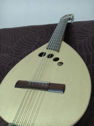 Instrumento musical tipo laúd, listo para ser tocado. Incluye su funda para protegerlo. - Cuerpo de madera. - Mástil con trastes. - Cuerdas metálicas. Juan Estruch Luthiers del Valles
