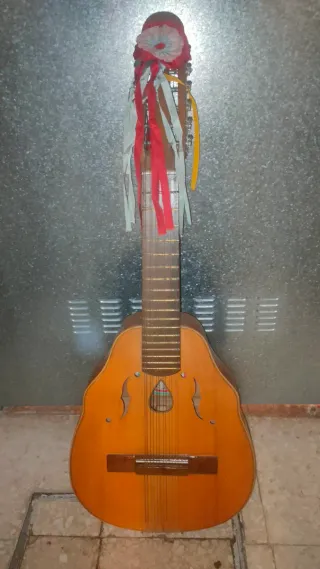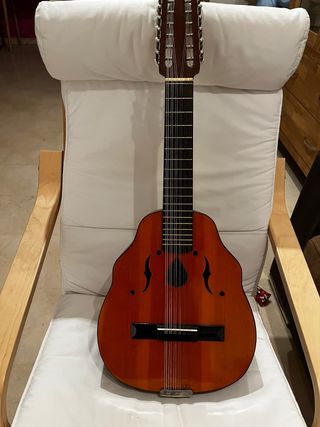 Instrumento musical tipo laúd con un diseño clásico y elegante. - Cuerpo de madera con acabado brillante. - Mástil con 12 cuerdas. - Dos orificios de sonido en forma de 'f'.en perfecto estado. Precio algo negociable,