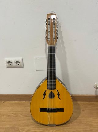 Instrumento musical tradicional español. - Cuerpo de madera con forma de pera. - Mástil largo con diapasón. - Clavijero con múltiples cuerdas. - Dos orificios de sonido en la tapa armónica. - Alhambra hecho en Muro de Alcoi - modelo P4