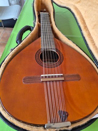 Laúd - Cuerpo de madera. - 12 cuerdas - Estado de conservación bastante bueno - Decoración en la cabeza del instrumento. - Se entrega con varias puas de regalo. - La funda está un poco tocada lo único. - Pieza de colección lleva más de 50 años y funciona.
