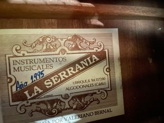 Guitarra flamenca Valeriano Bernal modelo Serrania. - Año de fabricacion 1995. - Ideal para principiantes. - Suena muy bien y es ligera y comoda. - Aros y fondo en sapeli. - Diapasón de ébano. - Clavijero dorado. - Incluye funda acolchada.