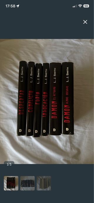 6 Libros de crónicas vampíricas de LJ SMITCH. Despertar - Conflicto - Furia - Invocación - Damon el retorno - Damon almas oscuras. Tienen el nombre de la primera persona que lo compro pintado en la primera pagina. ( solo es el nombre ).