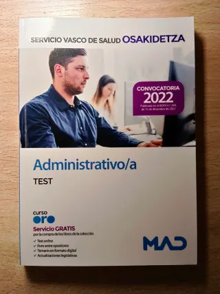 Libro de test para la categoría de administrativo de Osakidetza, servicio vasco de salud. Editorial MAD. Como nuevo.