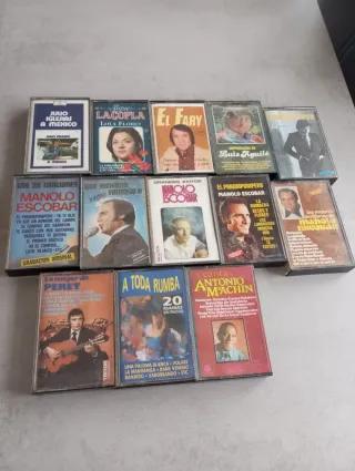 Lote de 13 cintas de casete originales. - Julio Iglesias a México - Sigue La Copla Lola Flores - El Fary - Superéxitos de Luis Aguilé - Las 20 Canciones Manolo Escobar - Que Hicieron Inédito Famoso P - Grandes Éxitos Manolo Escobar - El Porompompero Manolo Escobar - Las Mejores Sevillanas de Manolo Escobar - Lo Mejor de Peret - A Toda Rumba - Canta Antonio Machín