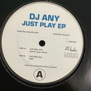 Vinilo de DJ ANY, Just Play EP. - Side A: Just Play One, Tool In Your Hand - Side B: Just Play Two, Odd - Escrito y producido por Bartosz Owocki - Distribuido por All Day Distribution