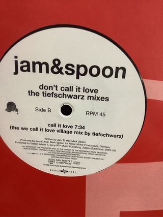 Vinilo de Jam & Spoon con el tema Don't Call It Love y sus remixes. - Don't Call It Love (The Tiefschwarz Mixes) - Call It Love (The We Call It Love Village Mix by Tiefschwarz)