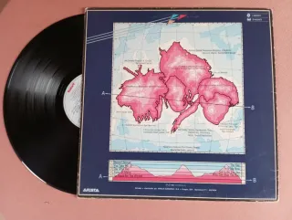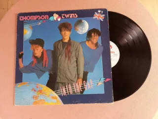 Conjunto de dos discos de vinilo del grupo Thompson Twins. - Into the Gap (Nº1) - Portada con diseño de globos terráqueos y la bandera del Reino Unido.