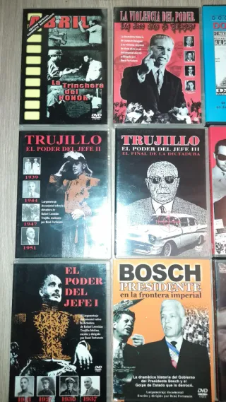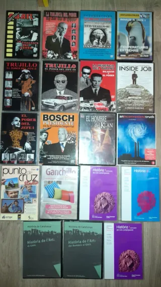 Lote de 20 DVDs variados 2 euros cada 1, todos por 10 euros Abril: La Trinchera del Honor. La Violencia del Poder: Los doce años de Balaguer. Documentales dominicanos Trujillo: El Poder del Jefe I. Trujillo: El Poder del Jefe II. Trujillo: El Poder del Jefe III: El final de la dictadura. La Herencia del Tirano: Balaguer y el Poder. Bosch Presidente en la frontera Animales al Límite 1: Temperaturas Extremas. Inside Job. An Inconvenient Truth (Una verdad incómoda). El Hombre del Klan. Punto de Cruz Studio. Ganchillo Fácil. Història 1: del món contemporani. Història 4: ESO. Història de l'Art: el Gòtic. Història de l
