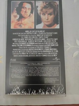 Película de terror El Cabo del Miedo en formato VHS. - Edición en español. - Incluye la película El Cabo del Miedo dirigida por Martin Scorsese.