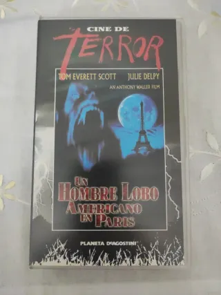 Película de terror Un Hombre Lobo Americano en París en formato VHS. - Protagonizada por Tom Everett Scott y Julie Delpy. - Dirigida por Anthony Waller. - Distribuida por Planeta DeAgostini.