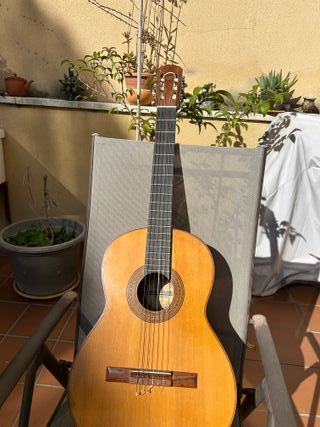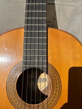 Guitarra clásica española de madera. Contiene dos pequeñas grietas en la caja sin influir en el sonido suena bien i esta en perfectas condiciones!! - Tapa de madera. - Mástil de madera. - Diapasón de madera.