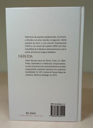 Veinte poemas de amor y una canción desesperada - Los versos del capitán ( de Neruda). Clásicos del Siglo XX de El País. Tapa dura. Tamaño 20,5 x 14 x 2 cm. Para envíos deben sumar entre los que cojas 25 € mínimo, tengo muchos más libros en mi perfil, para cantidades menores se deben recoger personalmente en CP 28.803.