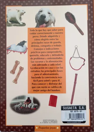 Vendo el libro "Cuidado y adiestramiento del perro" de la editorial Susaeta (Colección Pequeñas Joyas). Una guía completísima y muy ilustrada para dueños de perros o personas que estén pensando en adoptar uno. El libro cubre todos los aspectos fundamentales: Elección y cría: Cómo elegir la raza adecuada según tus necesidades. Educación y adiestramiento: Bases para una buena convivencia y obediencia básica. Salud y alimentación: Consejos sobre vacunas, cuidados según la edad y aseo. Comportamiento: Claves para entender mejor a tu mascota.