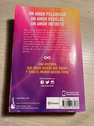 Vendo el primer libro de la saga After, "Aquí empieza todo", de Anna Todd. El libro está en buen estado, aunque tiene marcas de uso: algo doblado en algunas zonas y con signos de haber sido leído. Nada grave, se puede leer perfectamente y está completo.