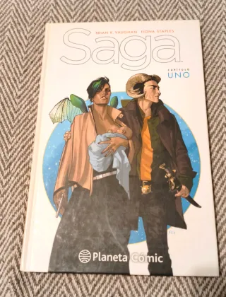 Saga - Resumen En Saga seguimos la historia de Alana y Marko, una pareja que encuentra el amor entre el caos de la guerra y forma una familia con el nacimiento de su hija. Su objetivo: dejar todo atrás, arriesgando todo lo que tienen en su vida para traer una nueva a este peligroso y antiguo universo. Así empieza una de las odiseas más memorables del noveno arte.