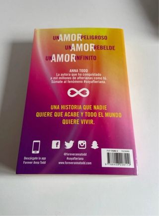 Una historia que nadie quiere que acabe y todo el mundo quiere vivir. El amor de Tessa y Hardin ya ha sido complicado en otras ocasiones, pero ahora lo es más que nunca. Justo cuando Tessa toma la decisión más importante de su vida, todo cambia. Los secretos que salen a la luz sobre su familia, y también sobre la de Hardin ponen en duda su relación y su futuro juntos. La vida de Tessa empieza a desmontarse, nada es como ella creía que sería. Tessa sabe que Hardin la quiere y hará lo que sea para protegerla, pero existe una diferencia entre querer a alguien y poder vivir con esta persona. Como nuevo. En tienda 17€