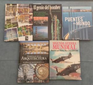 Cinco libros culturales de gran formato. Varios precios. -Puentes del mundo (256 pág) 8€. -Maravillas de la arquitectura (256 pág) 5€ -El genio del hombre (240 pág-1992) 9€. -Libro Guinness records 1992 (335 pág) 4€ -II guerra mundial: batallas por tierra, mar y aire 1939-1945 (253 pág-1982) 6€.
