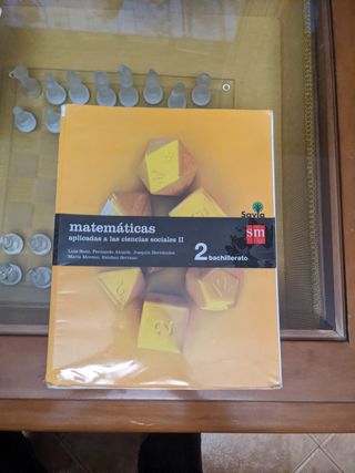 Libro de texto de segundo de bachillerato. Matemáticas aplicadas a las ciencias sociales. Forrado. Por dentro está perfecto. Por fuera, la esquina inferior derecha de la portada y la inferior izquierda de la contraportada denotan un poco de uso. El libro está estupendamente bien, sin anotaciones.