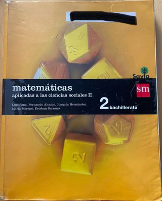 LIBRO de MATEMÁTICAS APLICADAS A LAS CIENCIAS SOCIALES II de 2º de BACHILLERATO, en buen estado sin escribir ni subrayar editorial SM Savia ISBN 978-84-675-8714-2