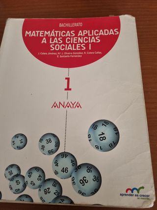 Libro de Màtematiques aplicades a les ciències socials de 1 de bachillerato en perfecto estado