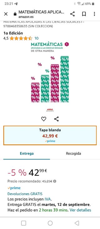 Libro en buen estado de matemáticas de las ciencias para 1 de Bachillerato de la marca Edebé. Comprado por wallapop anteriormente y sigue en el mismo estado. También se encuentra forrado.