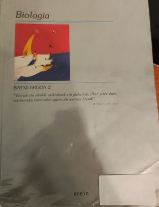 Libro en euskera usado para enseñanza (Normalmente 1° Bachillerato) Páginas: 150 aprox. Tiene desgaste por las esquinas pero no tiene nada escrito dentro. Precio origen: 14€ aprox.