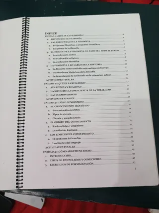 Dono Libro de texto de filosofía de primero de bachillerato con los principales temas dados en este curso realizado por el instituto.