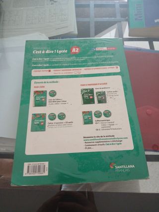 Libro de Francés (2°idioma) de 1°Bachillerato, editorial Santillana; Didier. También incluye 2 discos
