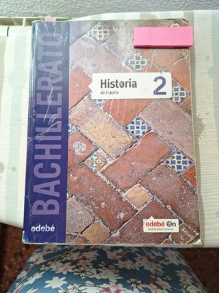 Libro de Historia de España, 2 de bachillerato. El libro por fuera está en buenas condiciones. No lleva forro y por dentro está rallado, pero se puede leer todo perfectamente. También se puede borrar lo escrito porque está en lápiz.