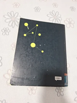 Libro de texto forrado en plástico de segundo de bachillerato. Se nota el uso, está trabajado y tiene indicaciones, escrituras y subrayados con bolígrafo.