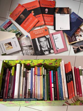 📚 Lote de libros de lectura – ESO y Bachiller 📚 Vendo libros de lectura obligatoria y de interés general, ideales para ESO y Bachillerato. Hay libros de castellano, valenciano, filosofía e inglés, muy usados en institutos. ✨ Algunos títulos incluidos (según la foto): • La Celestina – Fernando de Rojas • El Lazarillo de Tormes • Romeo y Julieta – William Shakespeare • Plató • Nietzsche • Descartes • Tirant lo Blanc – Joanot Martorell • La plaça del Diamant – Mercè Rodoreda 📚 Ideales tanto para estudiantes como para lectura personal. 🔖 Se pueden vender juntos o por separado 📌 Precio a consultar por privado