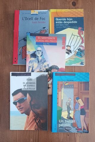 5 libros de lectura en Valenciano - L'Ocell de foc. Emili Teixidor. ( El vaixell de vapor) a partir de 12 años. ISBN: 9788476290415 (3€) - Querido hijo: estás despedido. Jordi Sierra i Fabra. (Alfaguara infantil) ISBN: 9788420464893 (3€) - El misteriós punyal del pirata. Joan Pla. (Bromera) ISBN: 9788476600364 (3€) - El guardià del anell. Vicent Pascual. (Tabarca llibres) ISBN: 9788480250344 (3€) - Un treball perillós. Joaquim Beltran. (Alfaguara Boramar) ISBN: 9788498070023 (3€) Más libros en perfil Envíos, lotes y en persona.