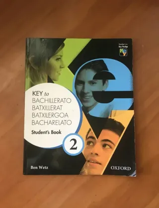 Libro escolar de inglés de 2o bachillerato. "Key to Bachillerato 2. Student's book", de Ben Wetz. Tan solo se ha usado durante un curso. Está en perfecto estado y no se ha escrito encima. Tengo más artículos en mi perfil, hago lotes rebajando precios.