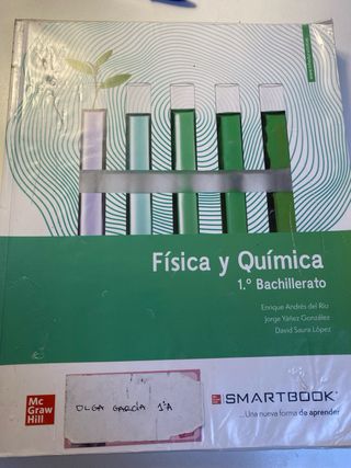 libro de fisica y quimica de 1 Bachillerato. Esta escrito a lapiz pero no son resultados de ejercicios sino anotaciones o ejercicios señalados. ISBN 9788448191542