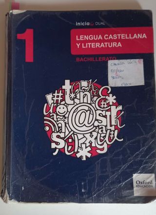 Libro de Lengua Castellana y Literatura para 1 Bachillerato de la editorial OXFORD. ISBN 9788467385519. Está forrado. Alguna página subrayada o con anotaciones a lápiz (muy pocas). Tiene dos esquinas un poco desgastadas.