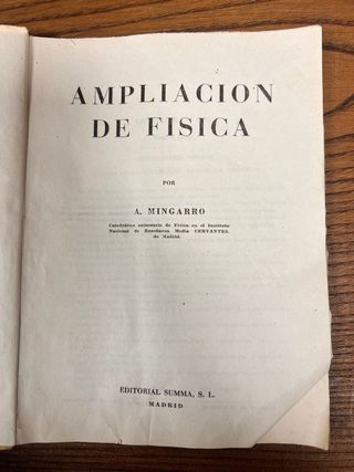 Autores: A. Mingarro y V. Aleixandre. Contexto: Se trata de un manual utilizado en el sexto curso de Bachillerato, opción Ciencias, bajo el plan de estudios de 1957 en España. Contenido: El libro aborda temas de física orientados a estudiantes de bachillerato de esa época. Edición: Una de las ediciones fue publicada en Madrid por la Editorial Summa.