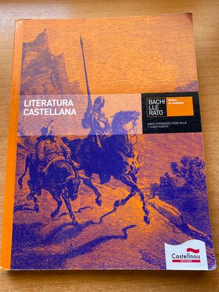 Libro de Lengua Castellana y Literatura de 1o de Bachillerato. Presenta grandes marcas de desgaste, mayoritariamente externas, debido a su uso pero en el interior est ́a bastante bien.