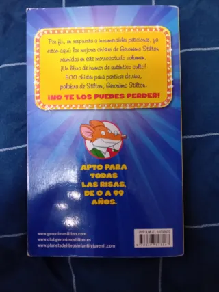 Los mejores chistes de Geronimo Stilton. Tiene un pequeño desperfecto en una de las esquinas, y pequeña doblez en la portada.