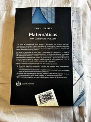Libro universitario muy completo, usado en carreras de ingeniería, matemáticas, física y ciencias aplicadas. Incluye numerosos ejemplos resueltos y ejercicios. Estado: bueno, con desgaste normal de uso (ver fotos). ISBN: 978-84-291-5159-6 Ideal como libro de apoyo o referencia.