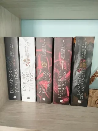 Saga De sangre y cenizas (los primeros 5 libros) en perfecto estado y spinoff (los primeros 2 libros) en perfecto estado. - Expuesto en estanterías como se muestra en fotos