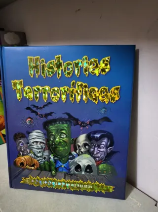 Libro de cuentos de terror con ilustraciones de monstruos. - Título: Historias Terroríficas - Contiene 14 relatos escalofriantes. - Diseño llamativo con personajes de terror.
