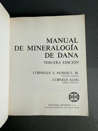 Manual de Mineralogía de Dana de Cornelius S. Hurlburt y Klein Tercera Edición, 1982 Rústica, 564 páginas.