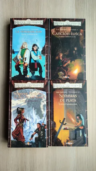 LOTE 4 LIBROS REINOS OLVIDADOS: Los arpistas I, II, III. 🔹La venganza elfa. 🔹Canción elfica 🔹Sombras de plata. 🔹Siempre unidos, la isla de los elfos. Nota: Totalmente nuevos, muy antiguos con hojas tonos amarillos por paso del tiempo. Uno de los libros tiene unas pequeñas marcas (ver foto).